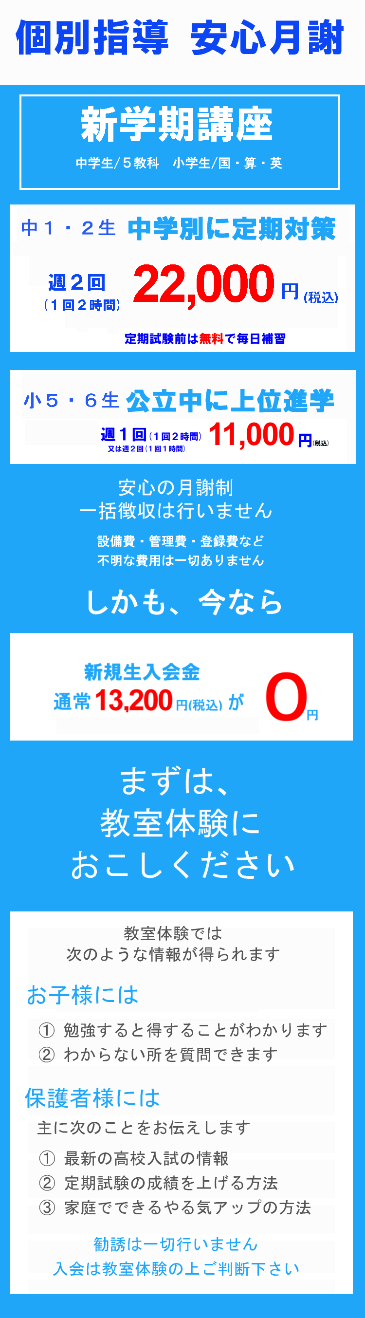 ■リーズナブルな費用で、長時間の受験指導誰でも言われたことを実行すれば、