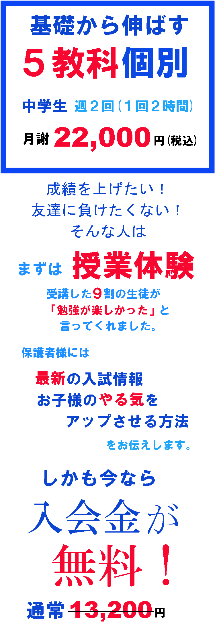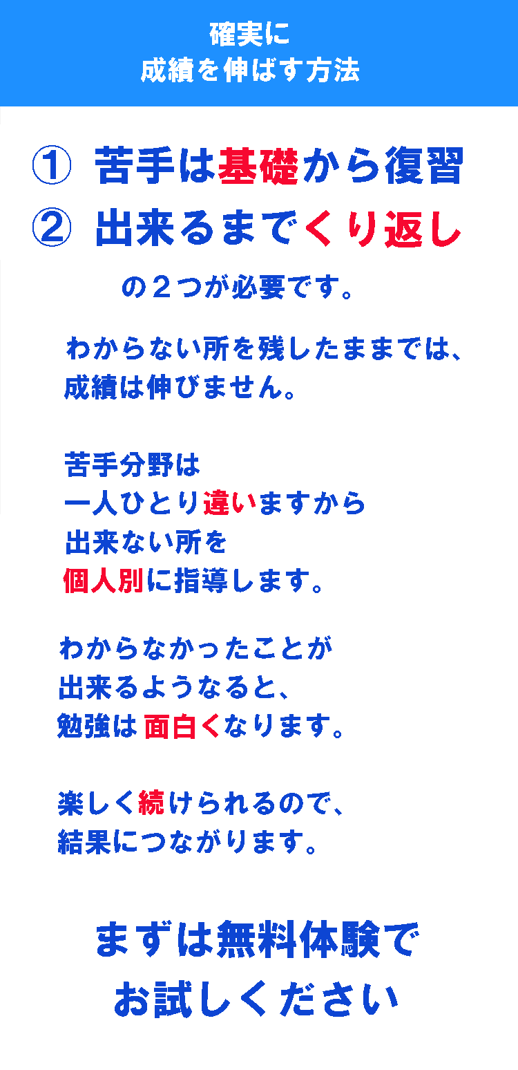 ■リーズナブルな費用で長時間の受験指導誰でも言われたことを実行すれば、必ず成果がでます。